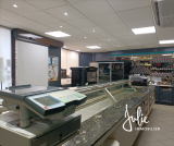 Le point de vente est composé de 2 vitrines en façade, 1 vitrine linéaire de 8 m, 1 vitrine fermée, plan de travail et rayonnage.